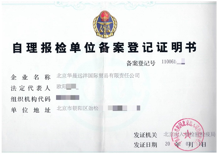 自理報(bào)檢單位備案登記證書